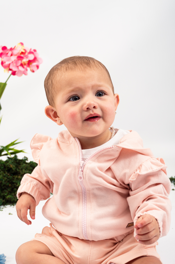Campera de rustico liviano con capucha, bolsillos y cierre.