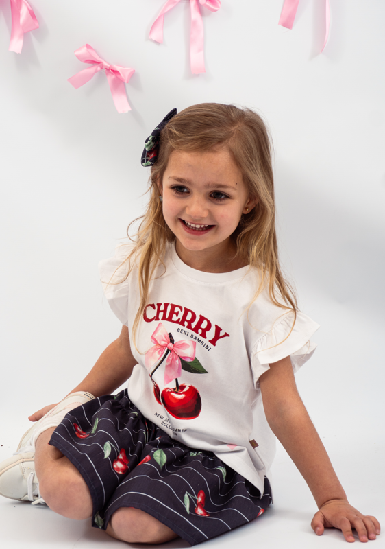 Remera musculosa de algodon estampado + falda estampada batista con lazo.