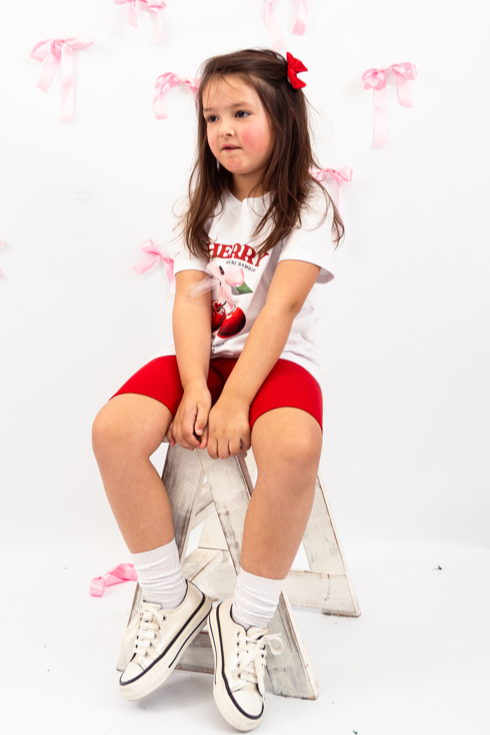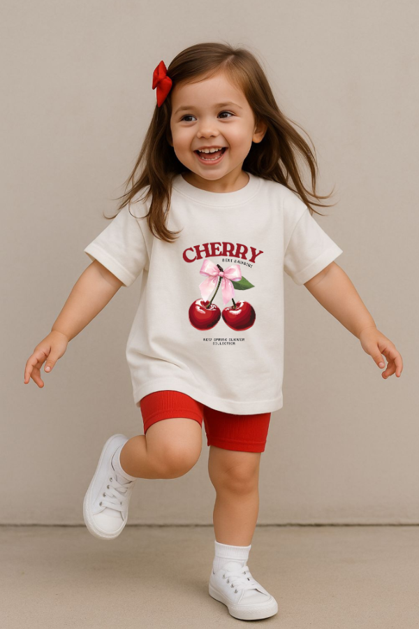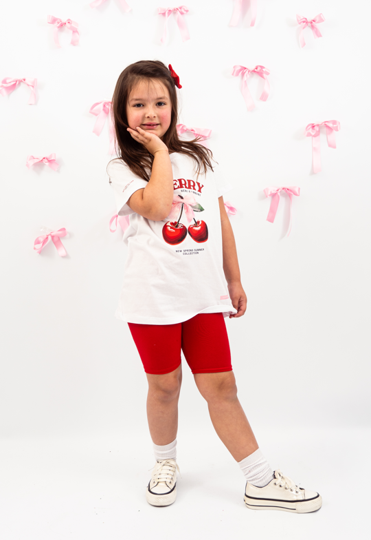 Remeron de algodon con estampa central + biker de agldon con lycra roja.