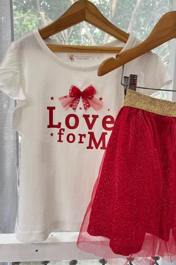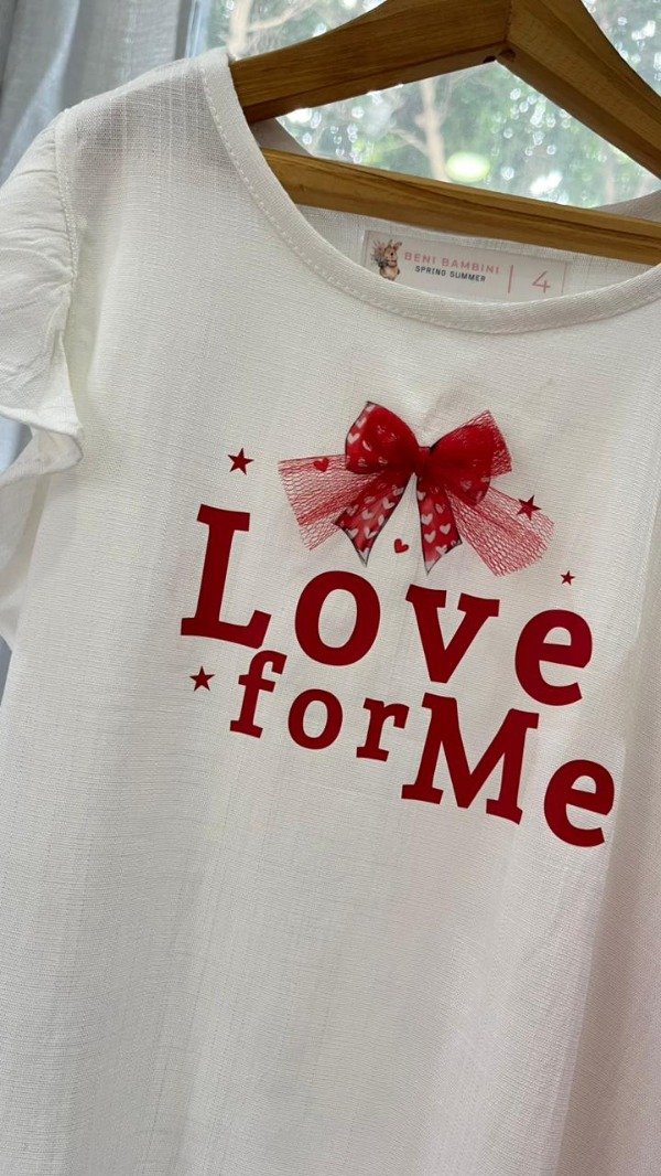 Remera de lino espandex con volado en hombros con estampa y moño en tull
