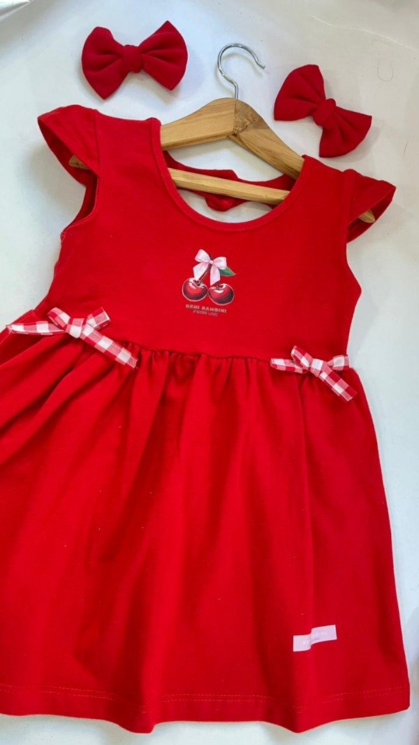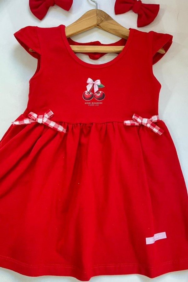 Vestido de algodon con lycra con detalle de lazos cuadrille, y manguitas.