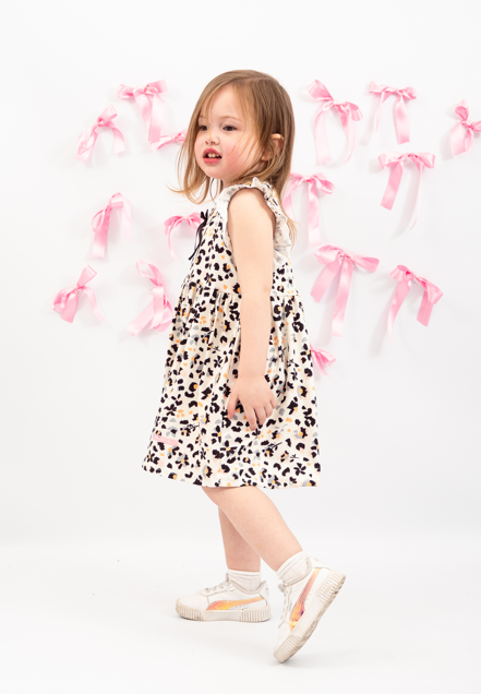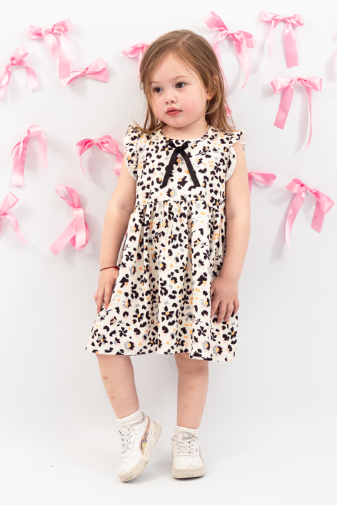 Vestido con detalle de lazo y voladitos en hombros, confeccionado en modal soft.